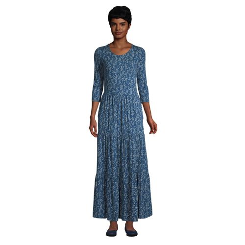 Women S 3 4 Sleeve Scoop Neck Tiered Maxi Dress Lands End